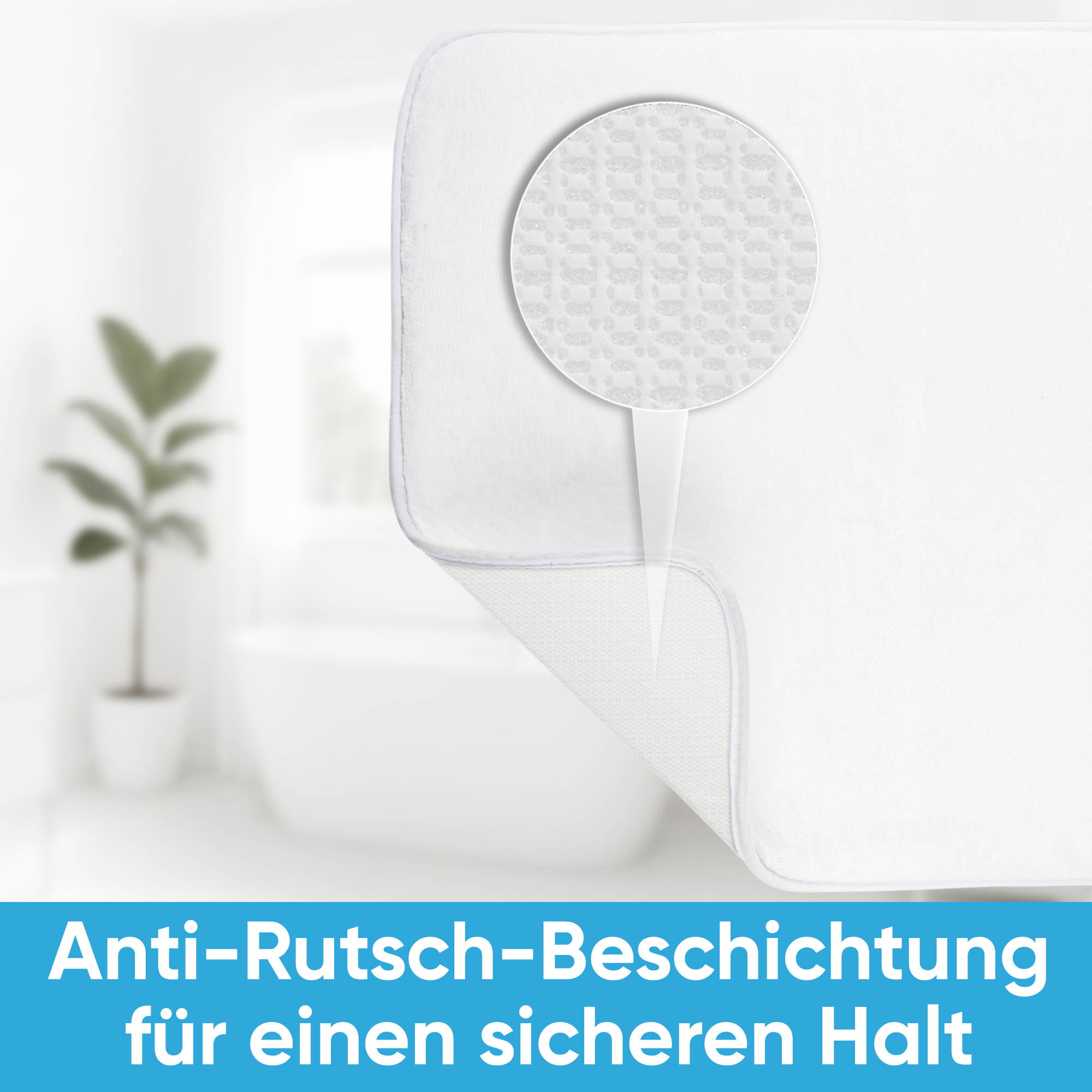 Due to its anti-slip underside, the bath rug doesn’t move away. It is also suitable for bathrooms with underfloor heating.