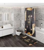 The bath rug becomes an ornamental eyecatcher through the harmoniously matched colours and the vivid pattern.