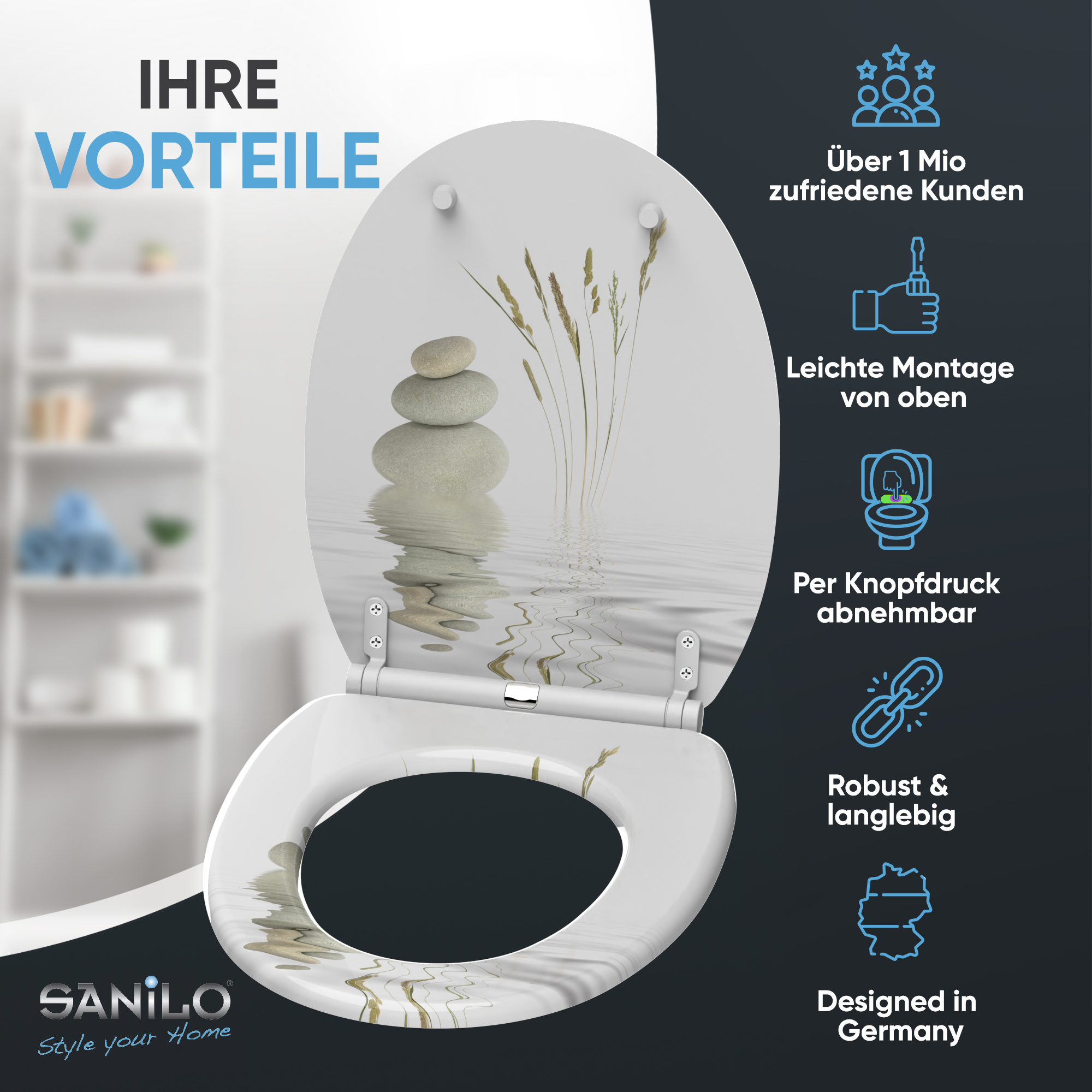 • Toilet seat made from high-quality wood