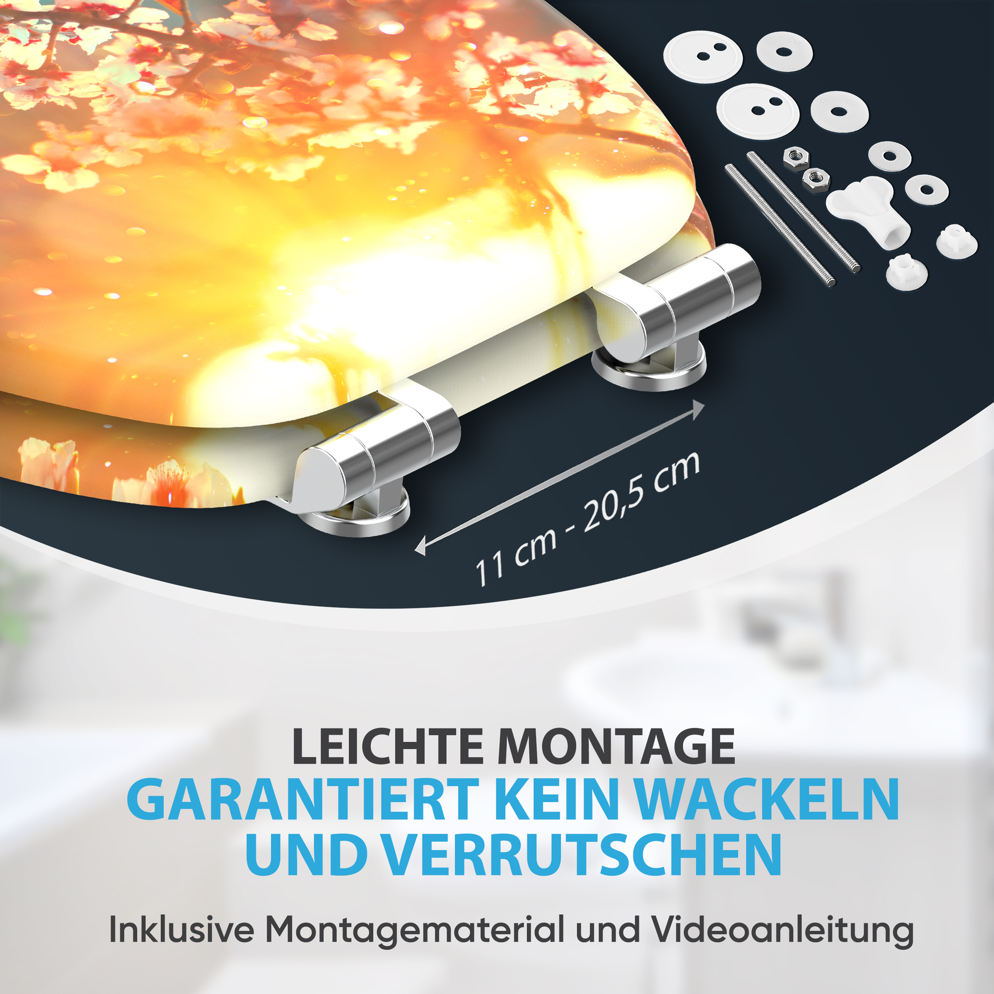 • Adjustable hinges to toilet bowl for all spacing 11,0 - 20,5 cm