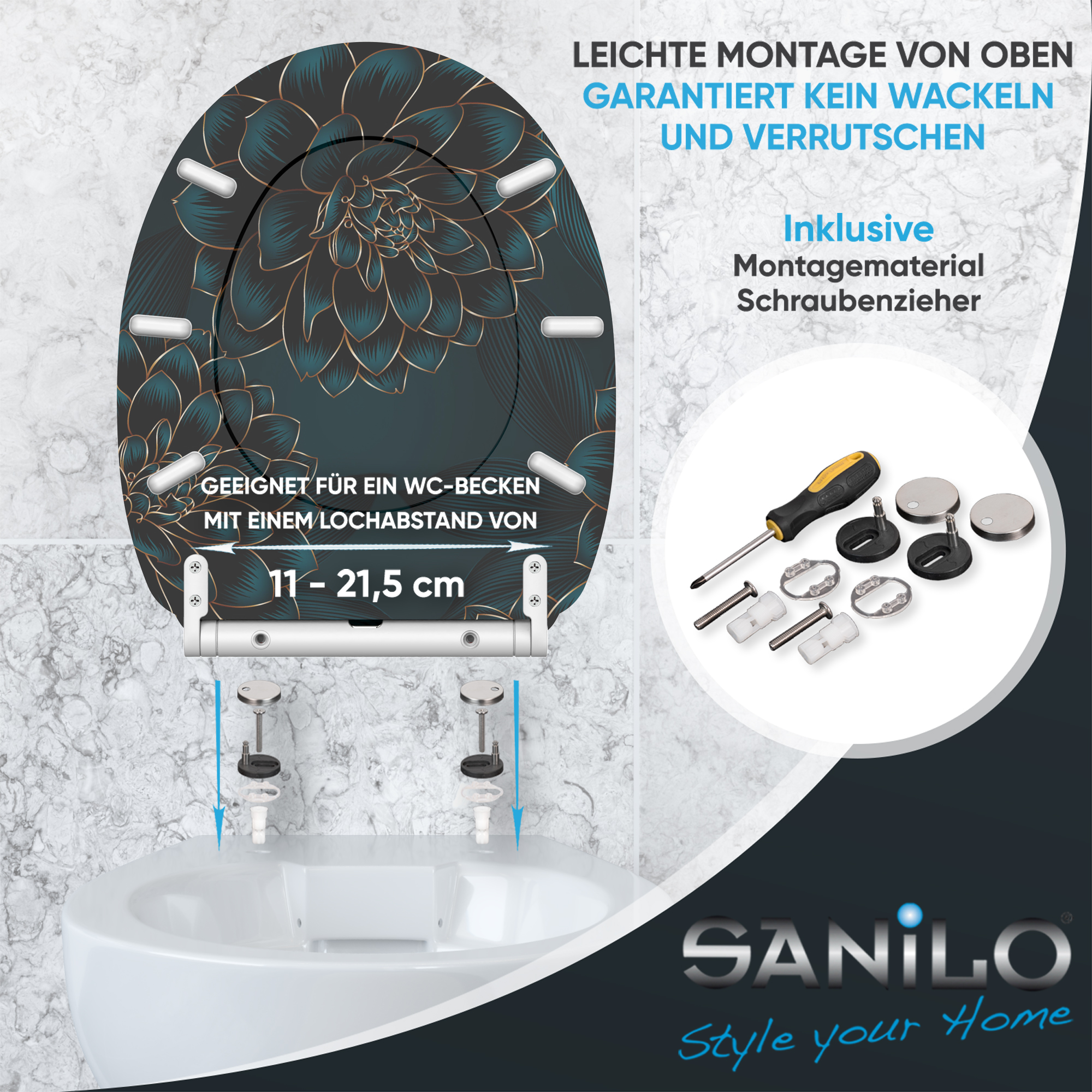 • Adjustable hinges to toilet bowl for all spacing 11,0 - 21,5 cm