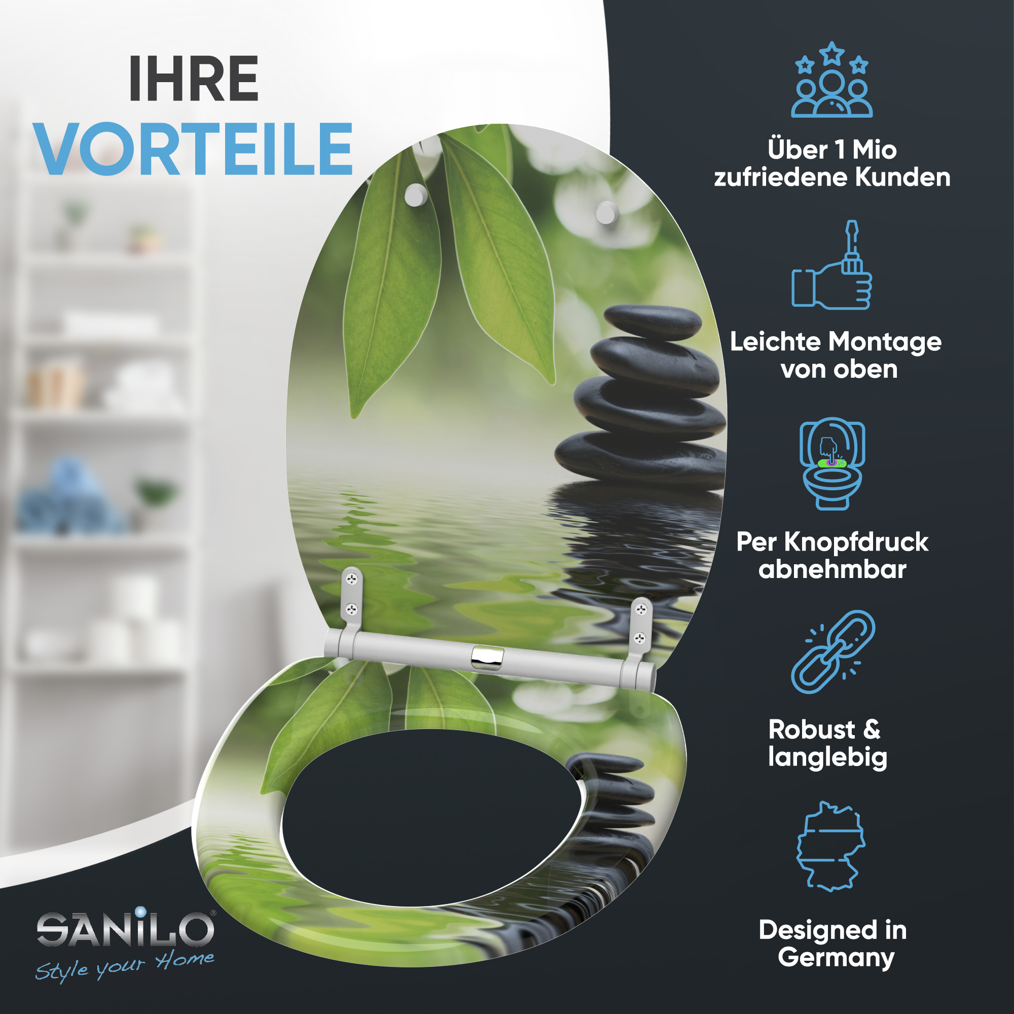 • Toilet seat made from high-quality wood