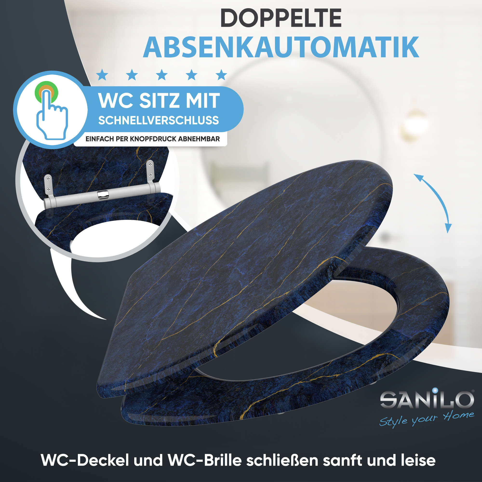 Soft Close Toilet Seat with Quick Release Marble Darkblue