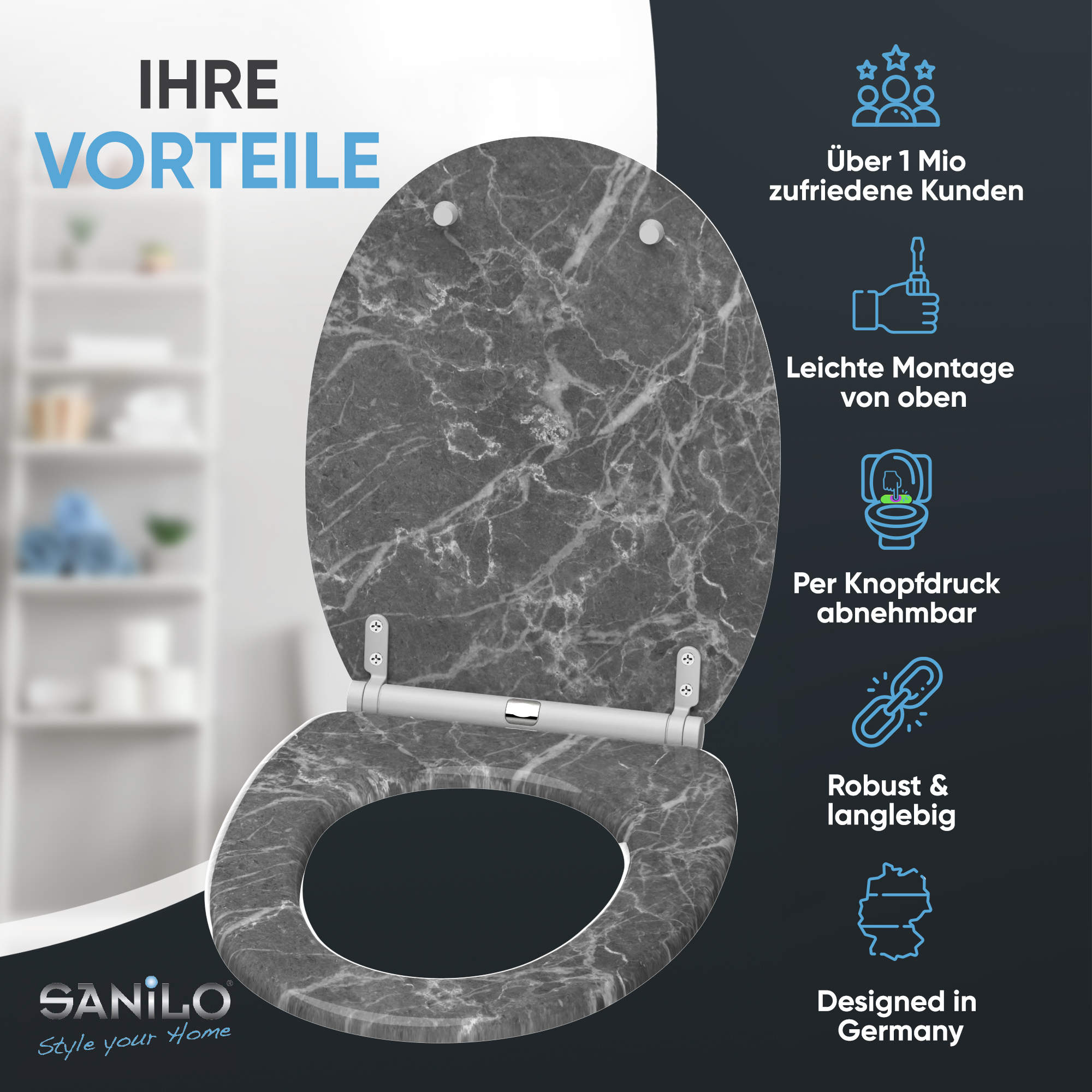 • Toilet seat made from high-quality wood