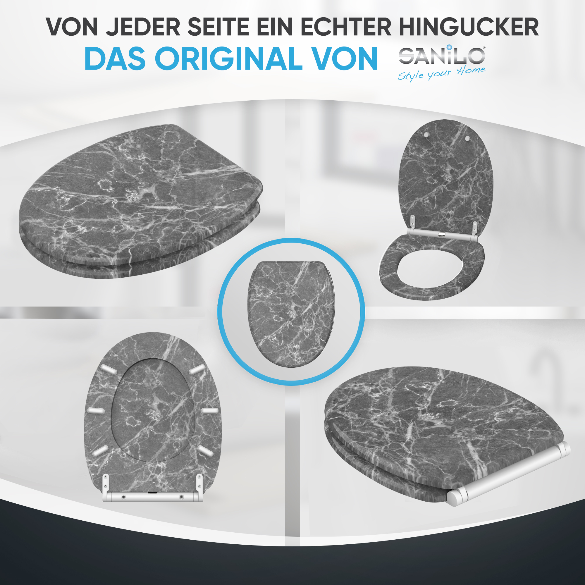 Soft Close Toilet Seat with Quick Release Marble Grey