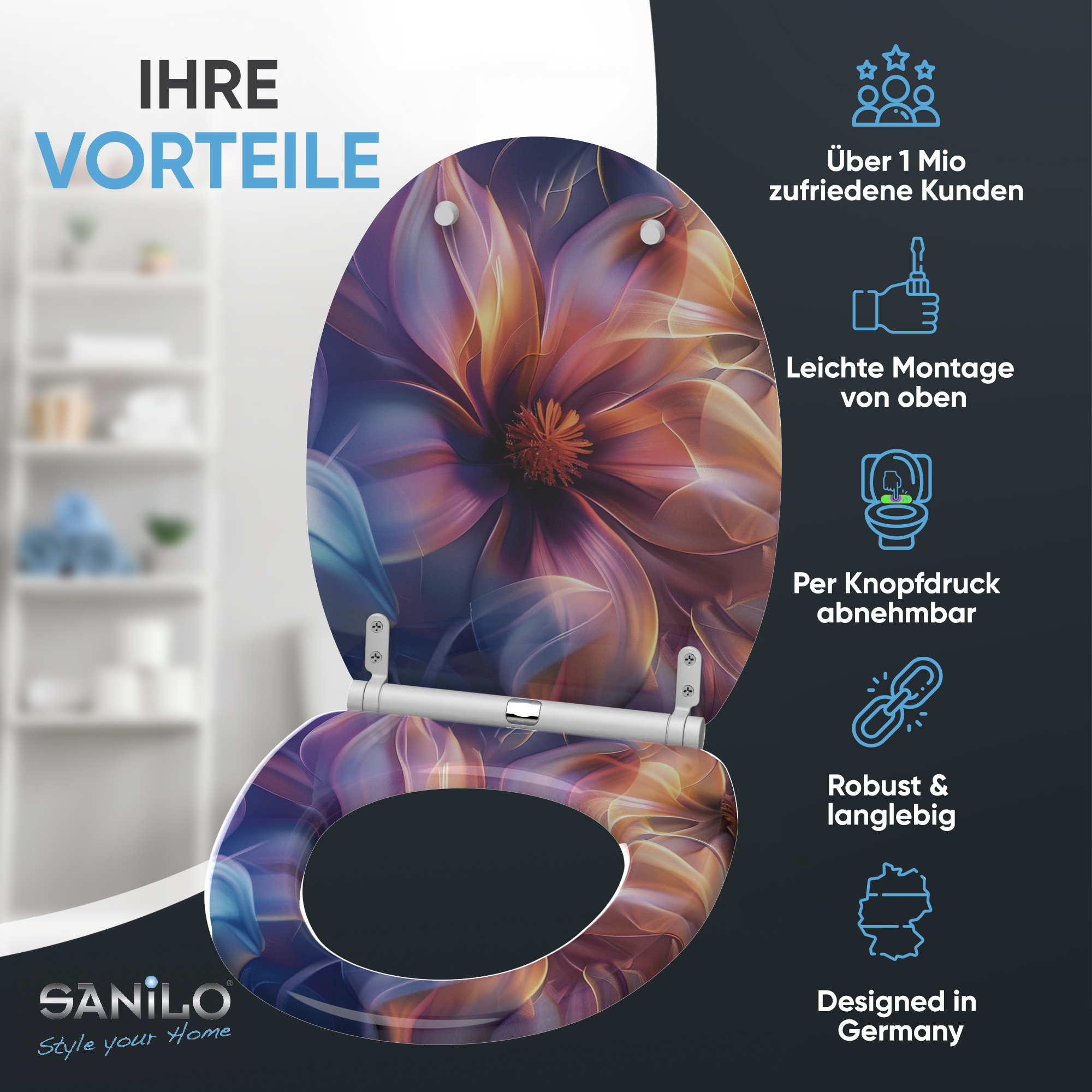 • Toilet seat made from high-quality wood