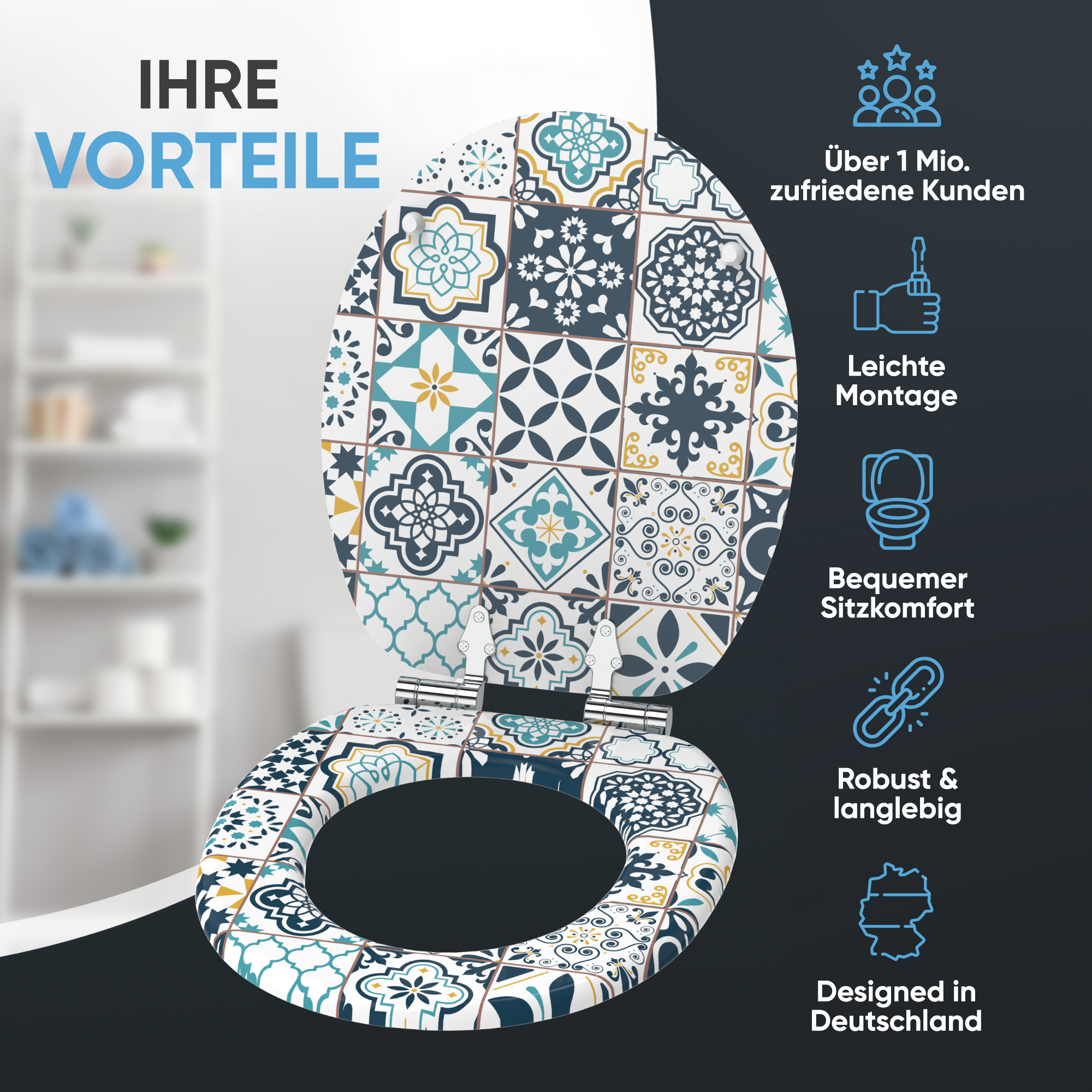 • Toilet seat made from high-quality wood